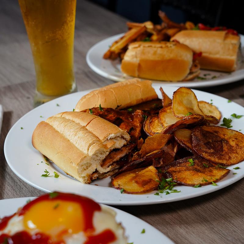 All sandwiches are served with a choice of either sliced potatoes, French fries, side salad, vegetables, or a side of pasta